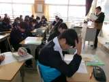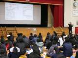 3年生が学年集会で、公立高校入試について説明を聞きました。説明を聞いたのち、当...