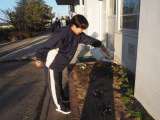 チューリップの球根を校舎南側の花壇に植え、美化委員が水やりをして育てています。...