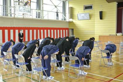 新2・3年生が登校し、明日の入学式の準備とリハーサルを行いました。