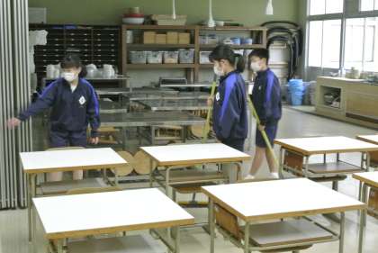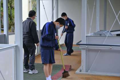 分担した活動場所での清掃が始まりました。