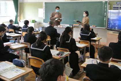 英語科の授業は、毎週水曜日にALTと一緒に学習します。本日その1回目の授業がありました。