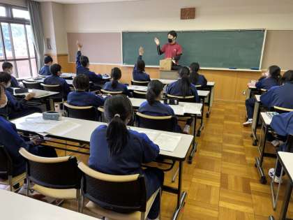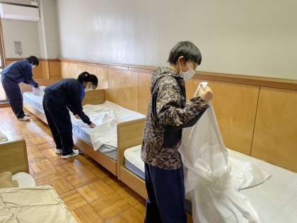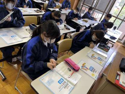 ベッドメイキングを終え、リラックスした後は、学習オリエンテーションから、午後のスタートです。中学校での学習について、理解を深めます。