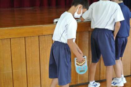 体育は、本来なら体育大会の練習を行っているところでしたが、延期したため、体力テストを行っています。