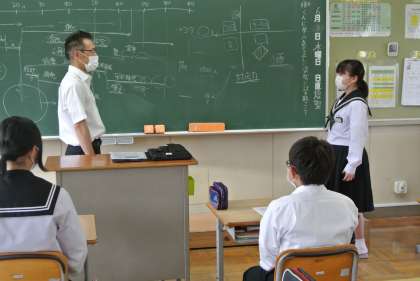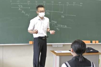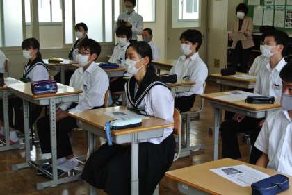 2年生の職場体験学習の一環として、働く人に学ぶ会を開催しました。平岩緑化の平岩様にお越しいただき、「今がんばれることをがんばることが大切である」ことを教えていただきました。