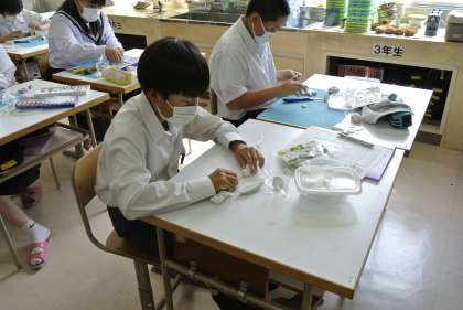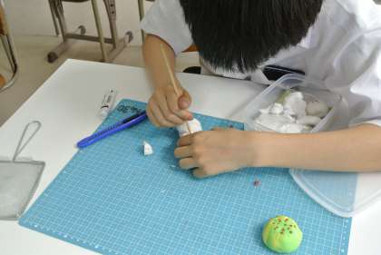 2年生は、美術で粘土を使った和菓子作りをしています。完成した作品は文化まつりや学校祭で展示する予定です。