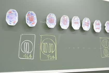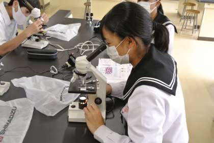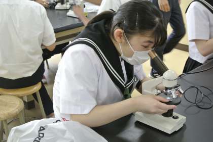 3年生理科では、細胞分裂を学習しています。顕微鏡を使ってタマネギの細胞を観察していました。