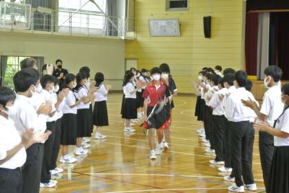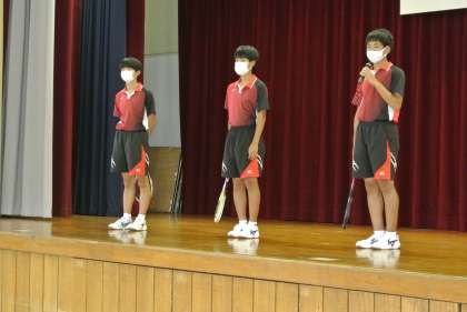 26日(土)から始まる総合体育大会に向けて壮行会を行いました。テニス部の皆さんがんばってください。