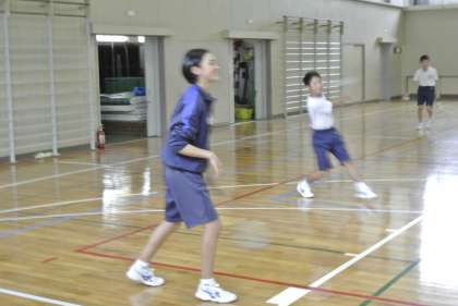 ダブルスの試合ができるようになりました。今日は教員ペアと対戦していました。