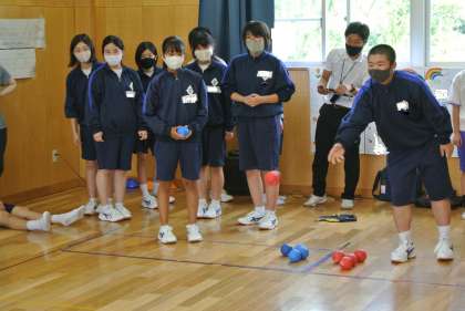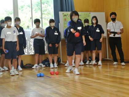 1年生が小原学園のみなさんと交流しました。ボッチャを楽しみました。