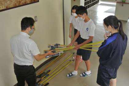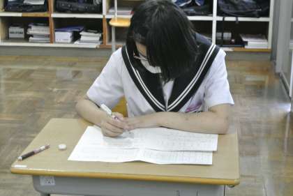 今日で9教科のテストが終わりました。午後は委員会活動を行いました。写真は環境委員による清掃道具の交換・点検の様子です。