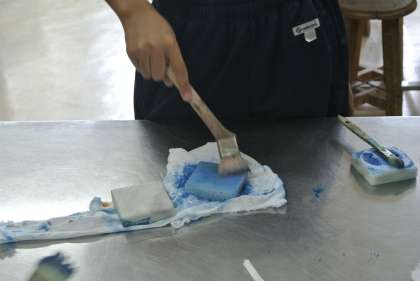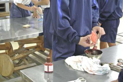 1年生が作っている「こうろうせきのペーパーウエイト」は完成間近です。作品は小原文化祭り、学校祭で展示します。