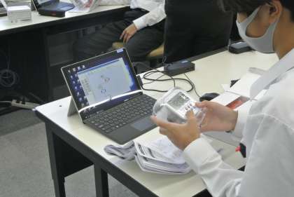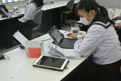3年生技術科の授業では、オーロラクロックを使ってプログラミングの学習をしています。