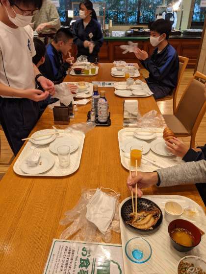 朝食を終えました。2日も全員元気にがんばれそうです。