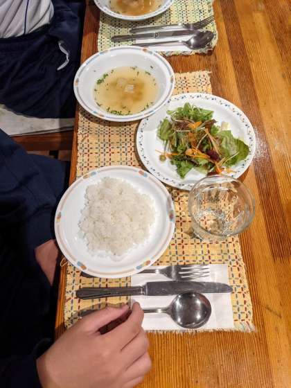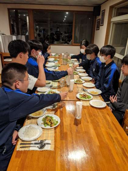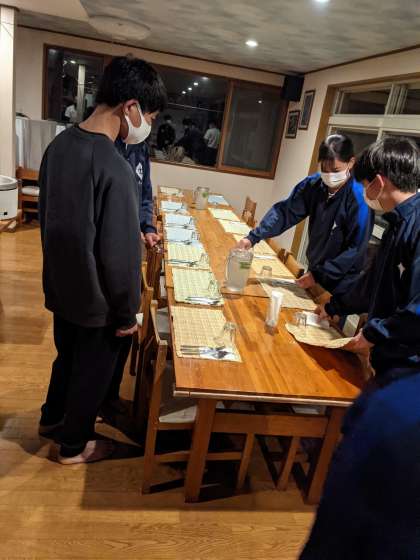 夕食をいただきました。ペンションでの勤労体験も行いました。