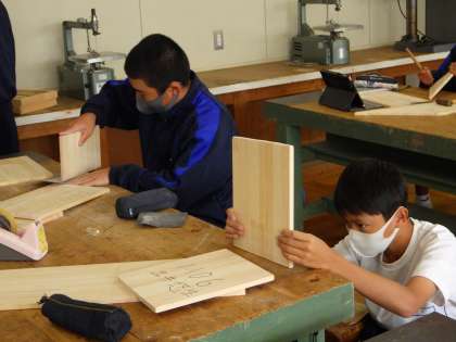 1年生の技術科の木工の授業です。