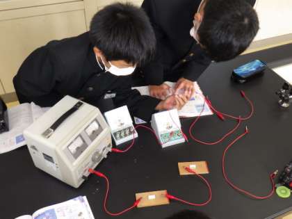 「電流と抵抗」の学習です。直列回路と並列回路での抵抗の値を実験で調べました。