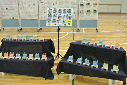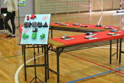 美術、家庭科で作った作品を展示しました。