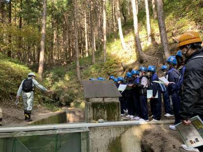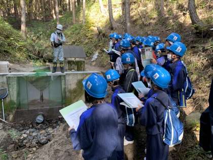 1年生が水源の森探検隊に参加し、森林の役割・間伐の重要性などについて学びました。