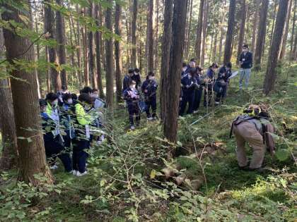 午後は、旭高原で実際に植物に触れながら、森林についての学習をしました。