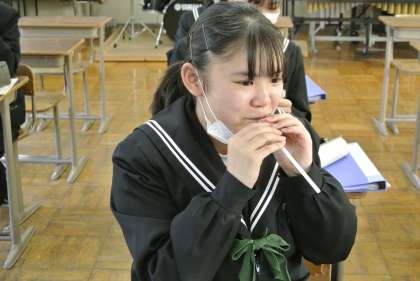3年生が音楽の授業で、先日の能楽鑑賞教室の復習として、ストローで篳篥を作ってみました。