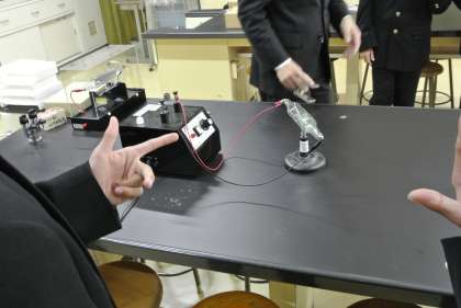 クルックス管を利用して、電流と電子について学んでいます。