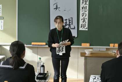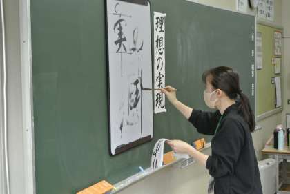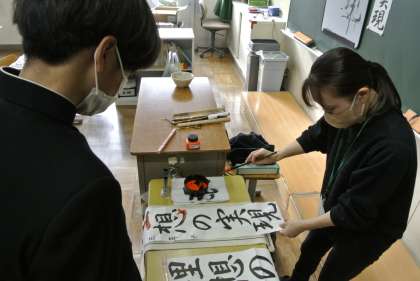 今日は、書道連盟より二木閣陽先生にお越しいただき、指導していただきました。