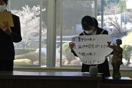 保健委員が睡眠について調べました。その内容を1週間かけて、給食の終わりの時間に発表しています。