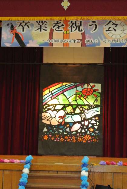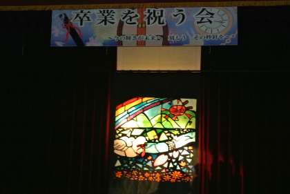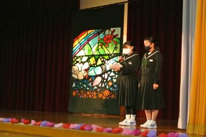 卒業を祝う会を行いました。これまで1・2年生が一生懸命に準備し、劇やクイズ、踊り、思い出ビデオ、ステンドグラスの披露などを行い、心温まる会となりました。歌が歌えないので、3年生からはダンスのお返しがありました。