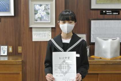 本年度も、善行を認め、おば中賞として表彰していきます。本日、本年度最初の表彰を行いました。
