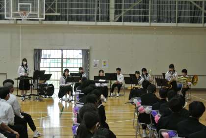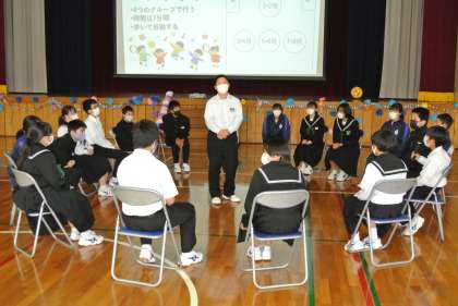 2・3年生が生徒会役員を中心に、入学を祝う会を開催しました。部活動紹介、レクリエーションなどで楽しいひとときを過ごしました。