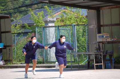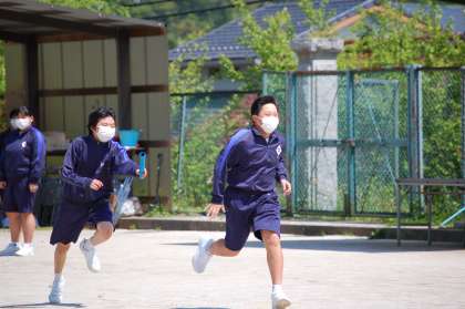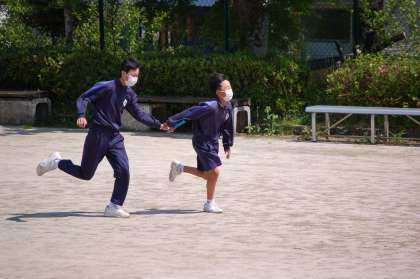 体育ではバトンパスの練習をしています。体育祭のリレー種目につなげます。