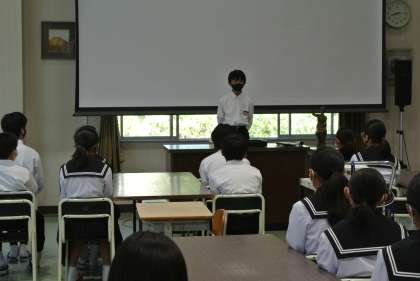 5月の全校集会を行いました。表彰披露、1年生による宿泊学習の成果発表、先生のイイ話等を行いました。