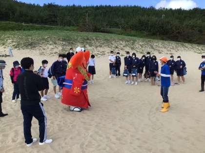 京丹後市のコッペちゃんとビーチで砂を鳴かせたり笑わせてたりしました。