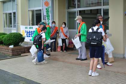 社会を明るくする運動がありました。多くの方から生徒一人一人に声をかけていただきました。