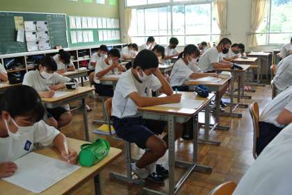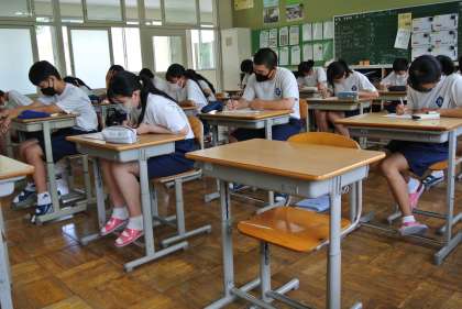 暑い中ではありますが、単元ごとのテストを行っています。写真は2年生数学科の様子です。