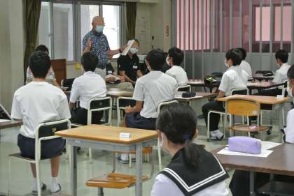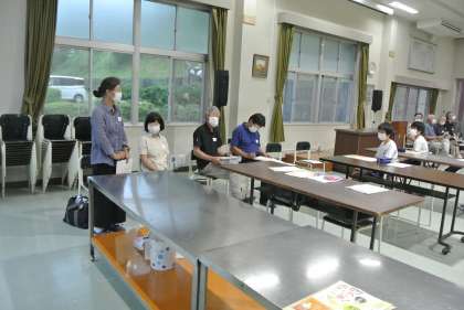 小原で活動するボランティア団体の代表の方に取材をさせていただきました。生徒からの「ボランティアのやりがいは?」「気を付けていることは?」などの質問に丁寧に答えていただきました。また、社会福祉協議会の方から夏休みの「おばボラ」の説明を聞きました。