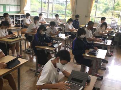 テストは終わりました。学校美化活動の分担をしたり、オンライン授業の確認をしたりしました。
