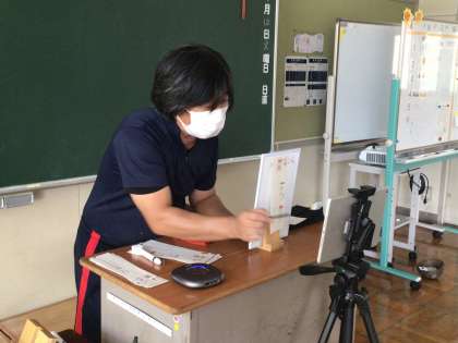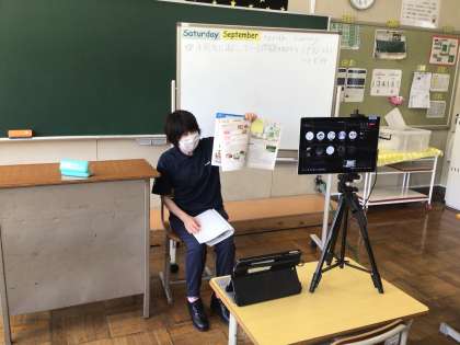 学校美化活動、リサイクル活動後は、オンラインで授業と帰りの会を行いました。