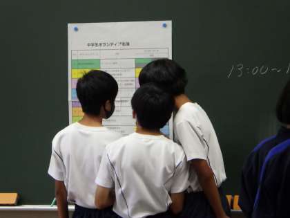 学校祭では、自分たちの活動だけでなく、文化まつりにかかわる地域の活動のお手伝いも行います。どの活動にしようか決めています。