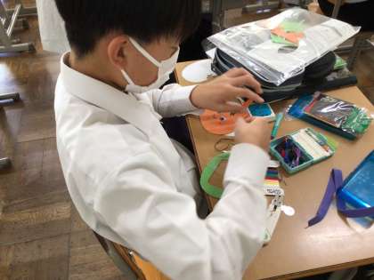 3年生家庭科では、保育実習に向けて名札を作りました。
