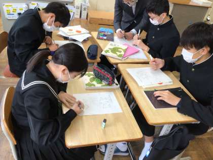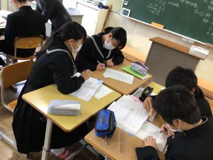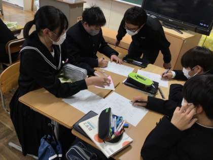 相似条件を使って図形を分類する問題に挑戦しました。グループで意見を出し合いながら考えました。