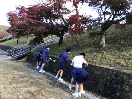 3年生は総合的な学習の時間に「地域のためになることはできないか」を考えています。今日は四季桜まつり前のふれあい公園に出かけ、公園の清掃をしてきました。