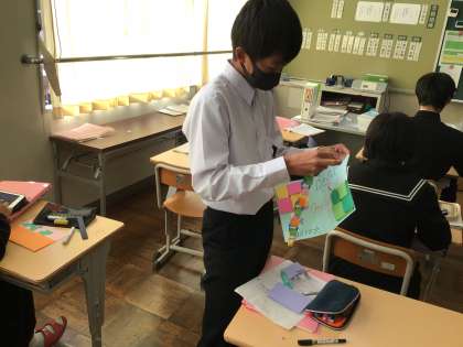 1年生英語科で、グリーティングカードを作りました。