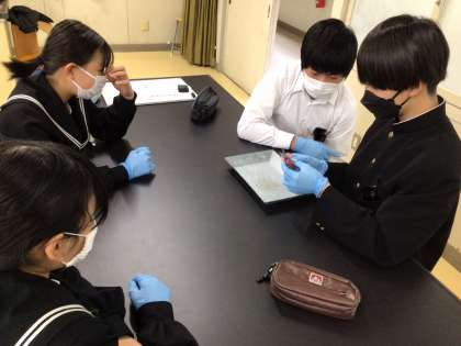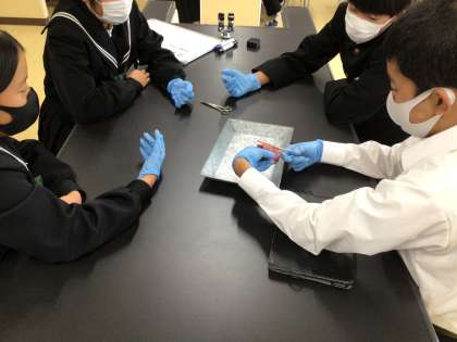 豚の肺を観察しながら、肺のしくみを学びました。