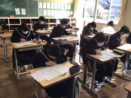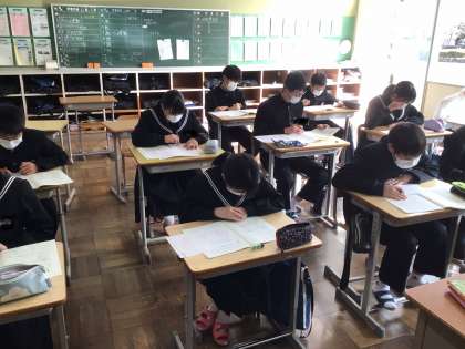 3年生は、第3回学習診断テストや入試本番に向けて、マークシート方式の問題に慣れるように模擬テストを行っています。