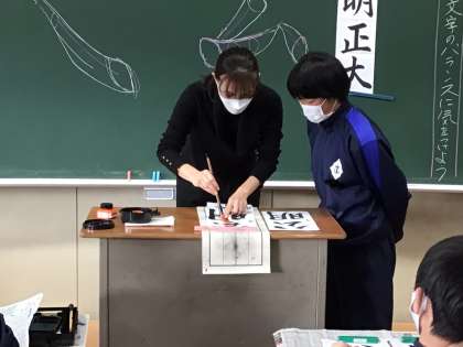 本年度も、豊田市書道連盟より二木閣陽先生にお越しいただき指導を受けます。