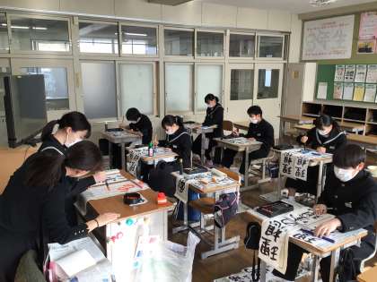 先週に引き続き、二木閣陽先生にお越しいただきました。個別にアドバイスいただいています。書き初め大会は冬休み明け初日に行います。