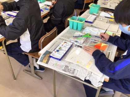 「感情を色で表現しよう」をテーマに、アクリルガッシュを使って丁寧に色を塗りました。