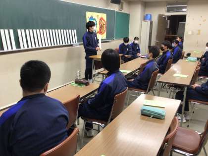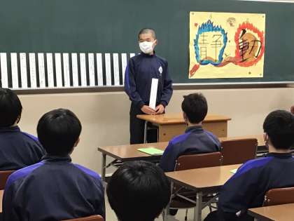 立志式とは,大人に近づく自分を自覚し、一人の人として「志」を立て、前向きに自己の将来を設計しようとする力を培う式。自分たちの小さいころの写真をみて、改めて、守られて大きくなってきたことを実感したことでしょう。そんな思いの中、一人一人が、自分の目標をみんなの前で、堂々と宣言しました。