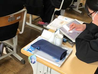 面を回転させてできる立体について学びました。タブレットを利用してどんな立体ができるか確かめました。